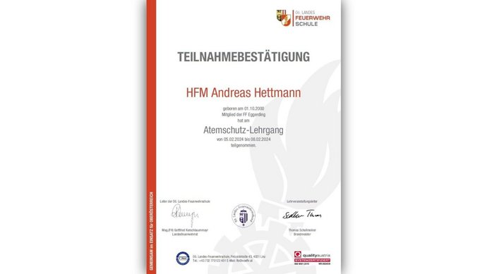 Erfolgreicher Abschluss des Atemschutzlehrgangs: HFM Andreas Hettmann meisterte intensive Ausbildung in der Landesfeuerwehrschule Linz!